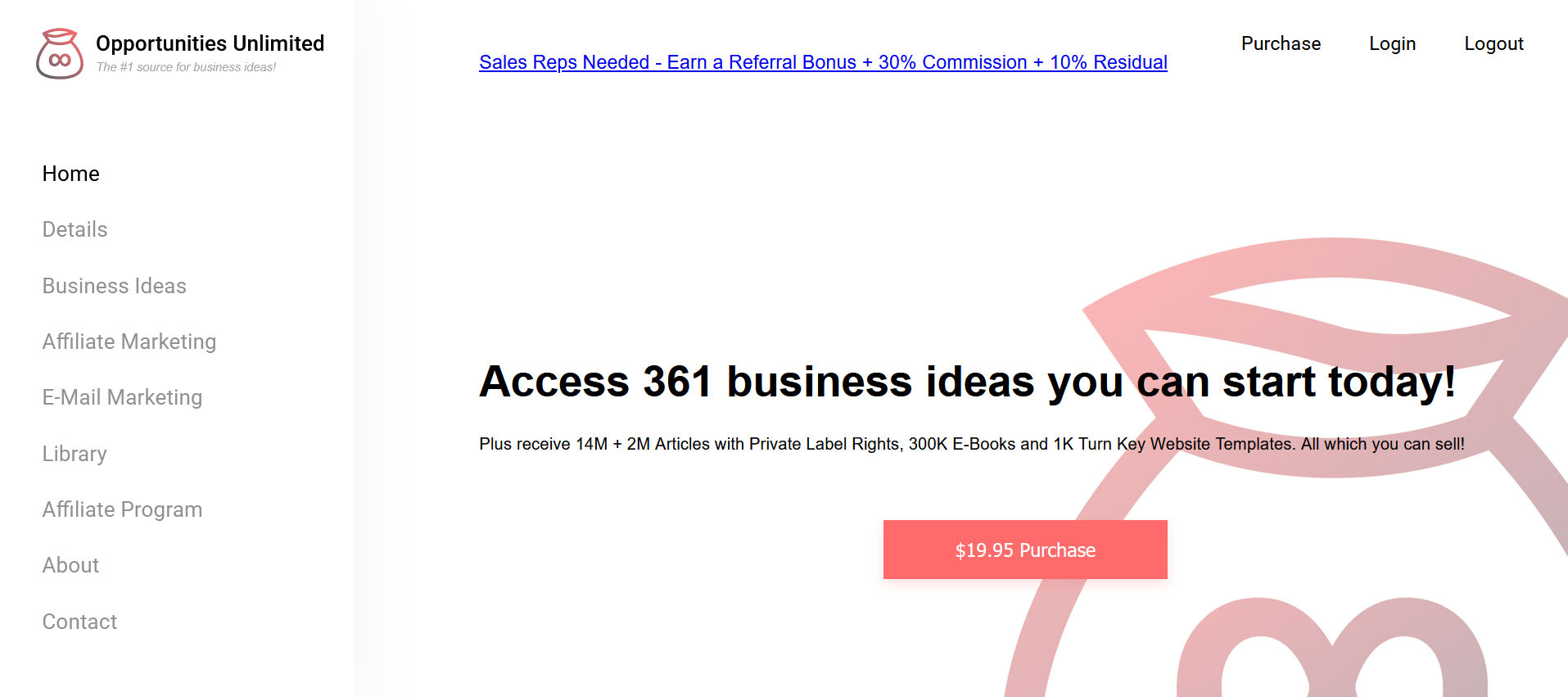 Business Ideas. Access 361 business ideas. Includes bonuses and additional products you can sell today.